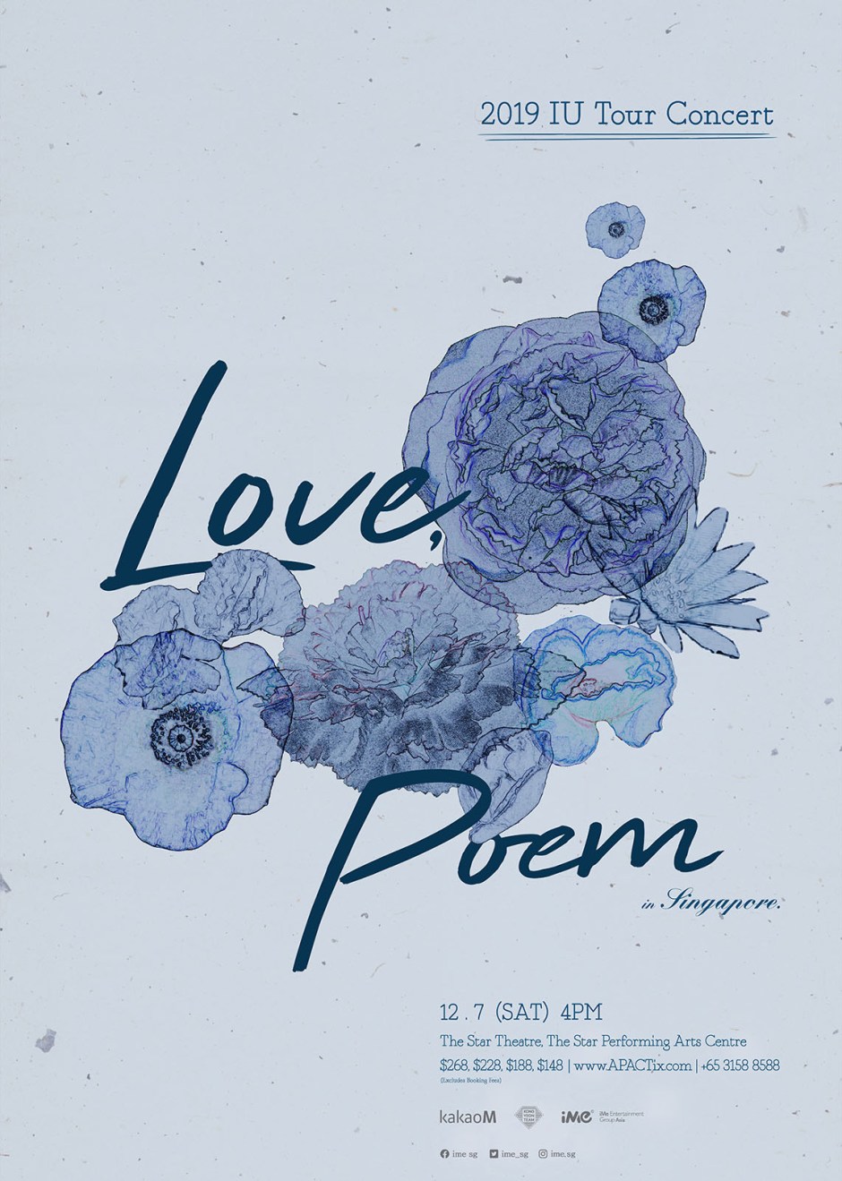 2019 IU Tour Concert <LOVE, POEM> In Singapore will be held on 7 December (Saturday) 4pm at The Star Theatre, The Star Performing Arts Centre. Singapore will be one of the 6 Asia stops for this year’s concert tour. This show is proudly brought to you by Idea Music Entertainment Group Asia (Singapore).