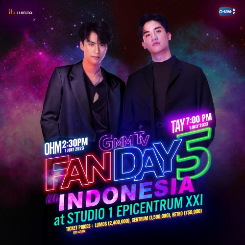 Ohm Pawat and Tay Tawan are finally visiting Jakarta for GMMTV FANDAY 5 in INDONESIA. After being held in Japan and South Korea earlier this year, the GMMTV FANDAY 5 marks the first GMMTV FANDAY held in Southeast Asia and Tay Tawan‘s first fan meeting visit to Jakarta. GMMTV FANDAY 5 will occur at Studio 1 Epicentrum XXI on 1 July 2023. Unlike other fan meetings, GMMTV and LUMINA ENTERTAINMENT will hold two fan meeting events in one day, starting with a fan meeting with Ohm Pawat at 14:30 WIB and followed by a fan meeting with Tay Tawan at 19:00 WIB.