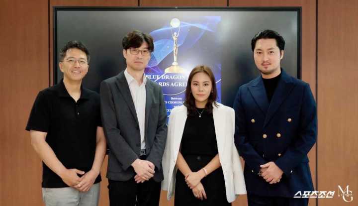 The signing ceremony, held at Chosun TV Station in South Korea, was graced by Miss Krongkwan Lertjaruanan, CEO MG CONNEXT (2nd from the right), and Mr. Shin Bo Soon, Editor-in-Chief representing The Sports Chosun co.,ltd (3rd from the right), Solidify the exclusive authorization for MG CONNEXT of the right and carry out THE BLUE DRAGON MUSIC AWARDS for this momentous occasion. Also present were Mr. MOON BOBAE Chief Executive Officer International of MG CONNEXT (1st from the right), and Mr. Lee Jung Hyuck, Entertainment Team Leader (1st from the left), from The Sports Chosun co.,ltd
