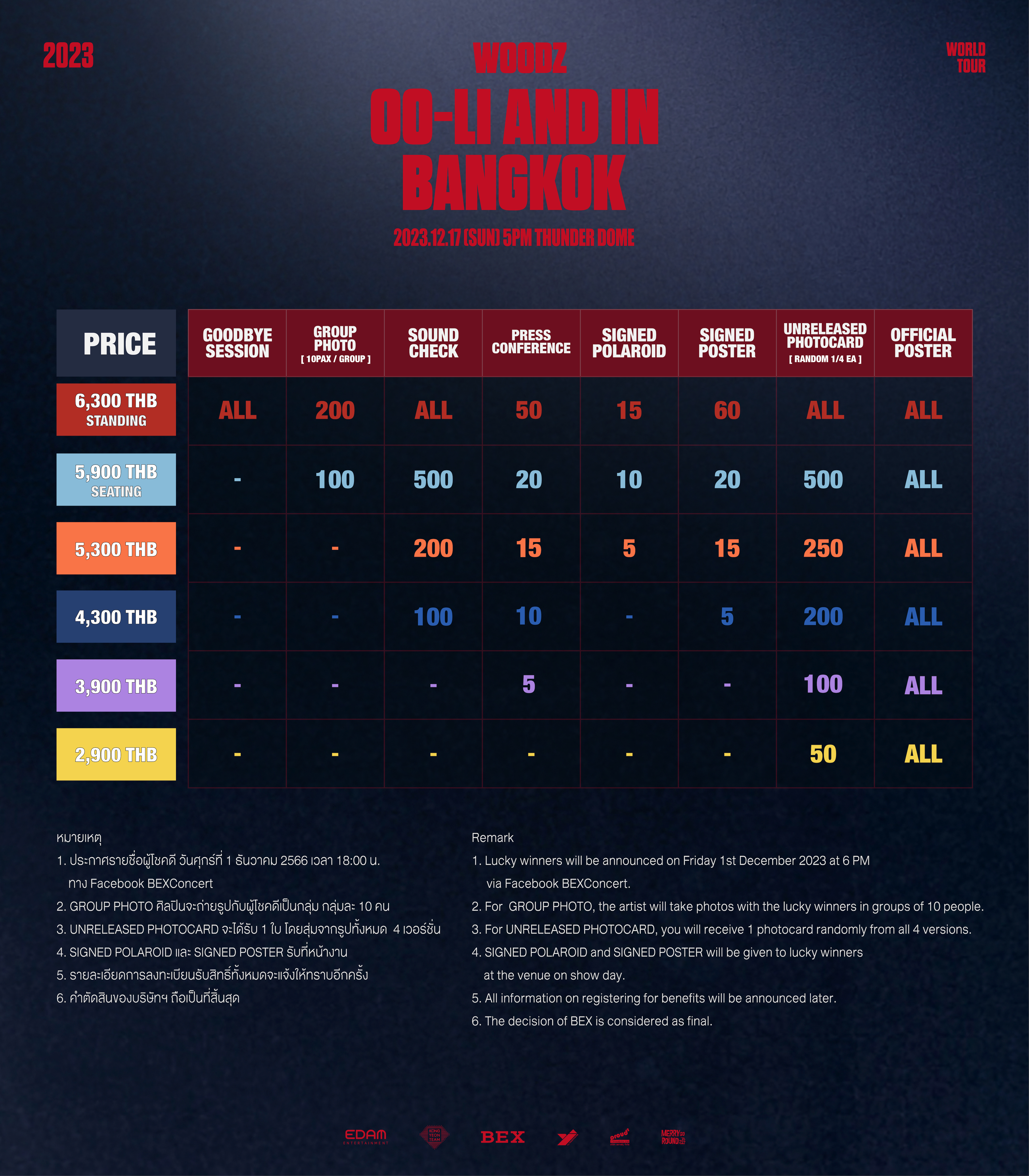 “2023 WOODZ WORLD TOUR ‘OO-LI and’ in Bangkok” will be held on Sunday, December 17th, 2023 at 5PM at Thunder Dome, Muang Thong Thani. Ticket prices are6,300 (standing) / 5,900 / 5,300 / 4,300 / 3,900 and 2,900 baht. This concert will be held for only “1 show time”. Any fans who already have tickets, get ready. For those who don’t have tickets yet, you can reserve them at any Thai Ticket Major sales channel. Seung-youn is waiting to meet all the fans! You can follow for more activities, news and information at Facebook and X: @BEX_Concert.