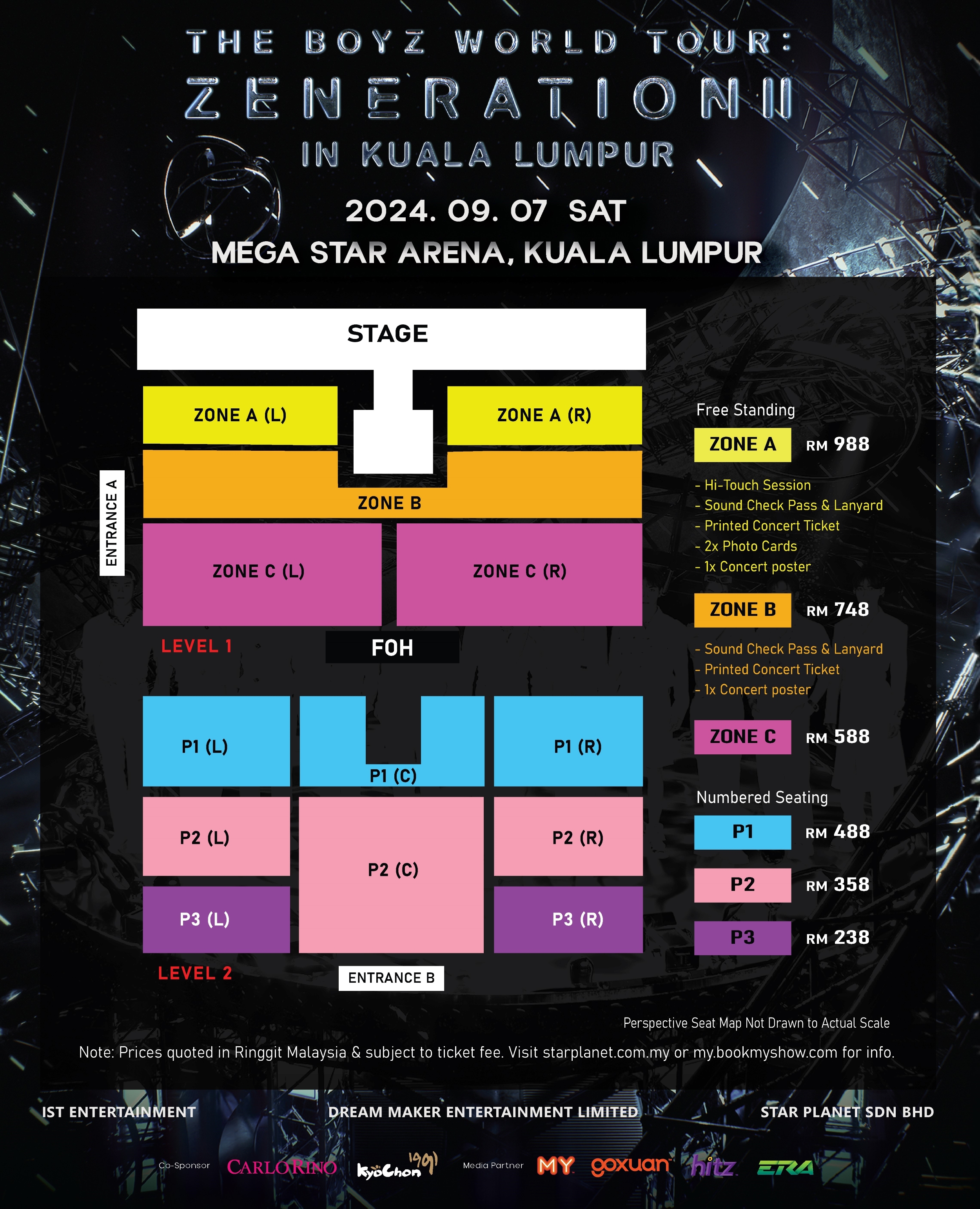 Tickets for “THE BOYZ WORLD TOUR: ZENERATION II IN KUALA LUMPUR” will be available for purchase starting July 30th at 12 PM through my.bookmyshow.com. Prices start at RM238. Fans who purchase the Zone A package will have the chance to participate in a hi-touch event. Early ticket purchase is encouraged due to the high demand expected for this much-awaited event.