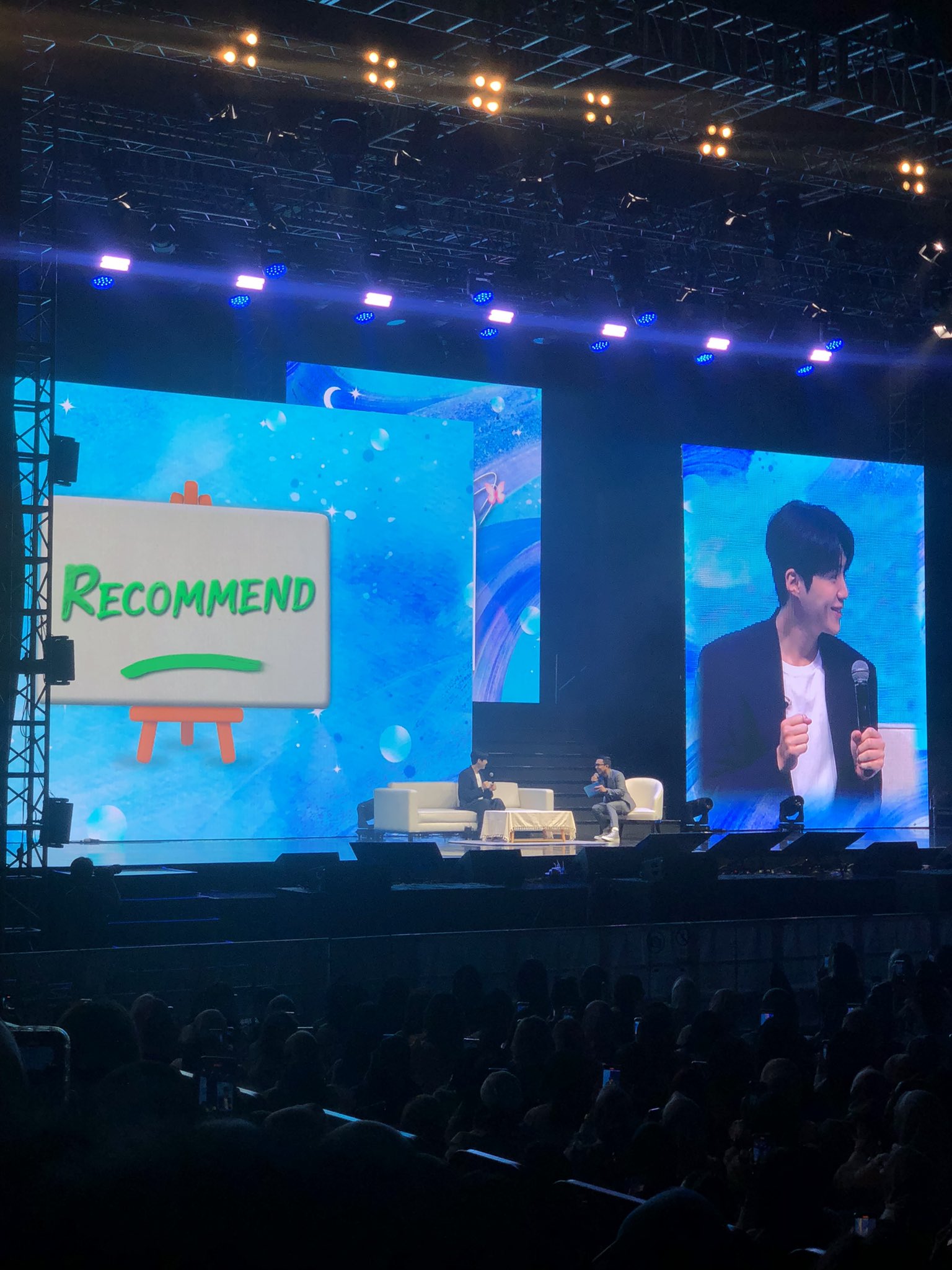 On the chit – chat segment, Kim Seon Ho asked by the MC about his goal in his career. He answered that he wanted to be a good actor and show his fans his best acting. He also got the question if the fans wanted to go to Korea, which placed should we visited? Seon Ho answered the fans should come to Han river and having 떡볶이 while enjoying the Han river vibes.