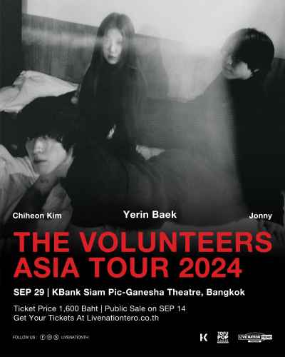 Join ‘The Volunteers’ for a night of grunge rock and soothing melodies featuring ‘Yerin Baek’. Tickets are priced at a single rate of 1,600 THB and will go on sale starting September 14, 2024, at 10:00 AM through Thai Ticket Major outlets and online at thaiticketmajor.com.