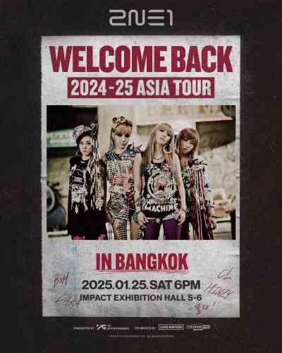 Legendary K-Pop girl group 2NE1 are making their comeback to the stage with the highly anticipated reunion concert tour “2024-25 2NE1 ASIA TOUR [WELCOME BACK]” taking in Hong Kong, Singapore, Manila, Jakarta, Taipei and Bangkok from late-2024 through early 2025. The Bangkok show will be on Saturday 25 January 2025 at Impact Exhibition Halls 5-6.