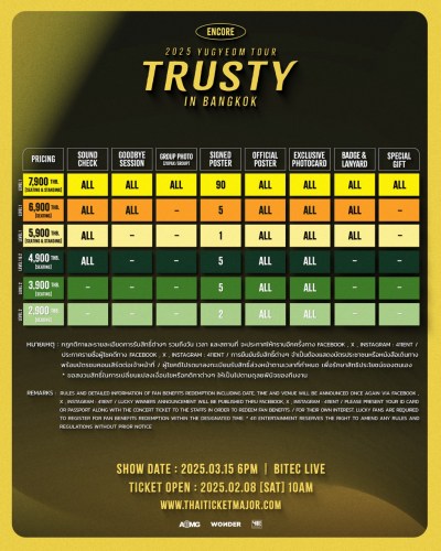 The wait is over, Thai Ahgases! This March, Kim Yugyeom, the multi-talented artist of GOT7, is bringing his highly anticipated 2025 Yugyeom Tour [TRUSTY] Encore in Bangkok to BITEC Live. Organized by Four One One Entertainment (411ent) in collaboration with South Korea’s AOMG and WONDER, the concert is set for Saturday, March 15, 2025, at 6:00 PM.