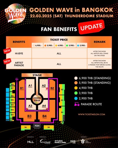 Have you secured your tickets yet? If not, now is the time! “GOLDEN WAVE IN BANGKOK 2025”, organized by Neverland Entertainment, is set to be the biggest K-POP event of the year, bringing together an all-star lineup for an unforgettable night of music and entertainment.