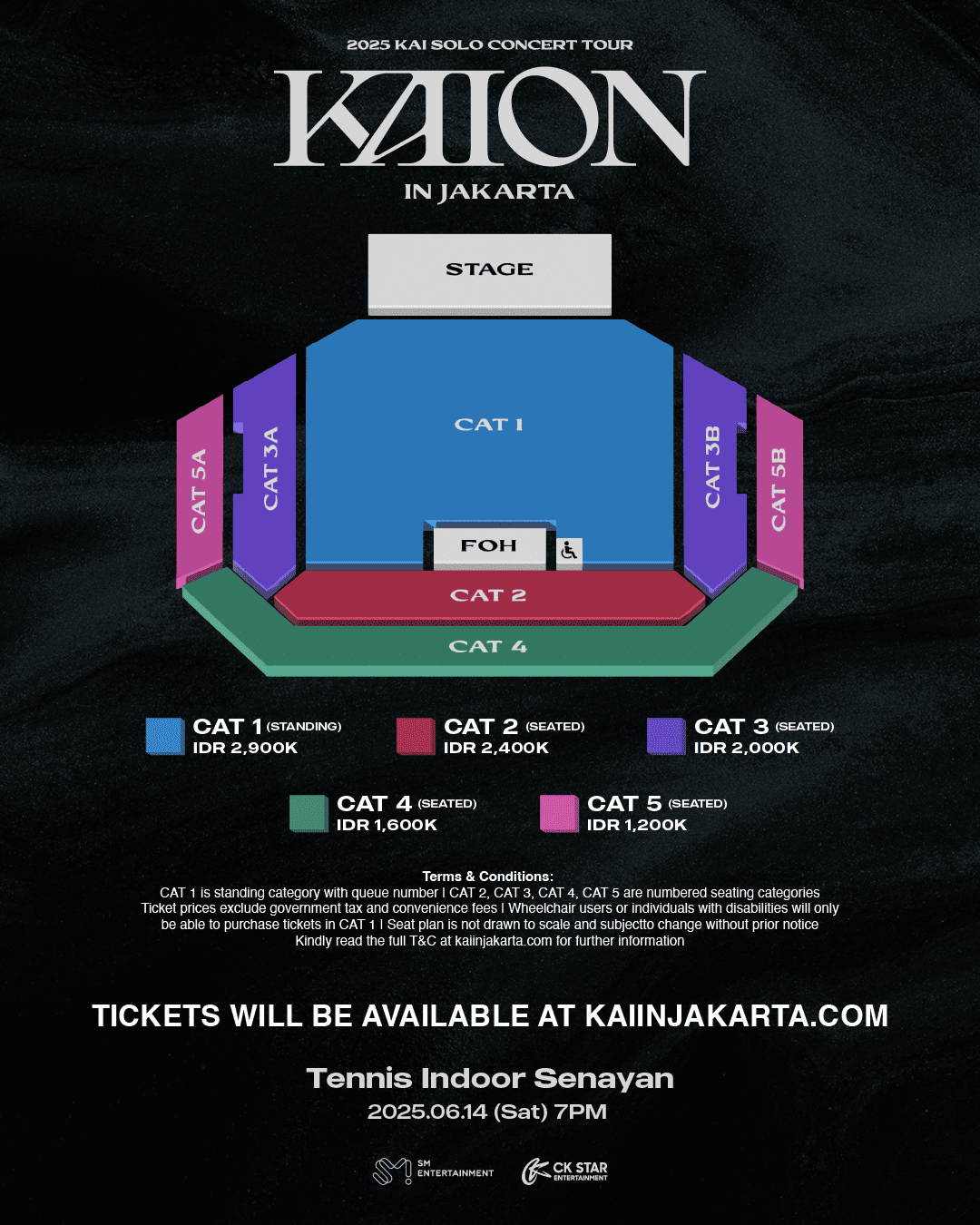 KAI, known for his incredible stage presence and undeniable talent, will grace the stage at Tennis Indoor Senayan on 14 June 2025 for his 2025 KAI SOLO CONCERT TOUR <KAION> IN JAKARTA, offering fans an unforgettable performance filled with his signature charisma, dazzling choreography, and soulful vocals.