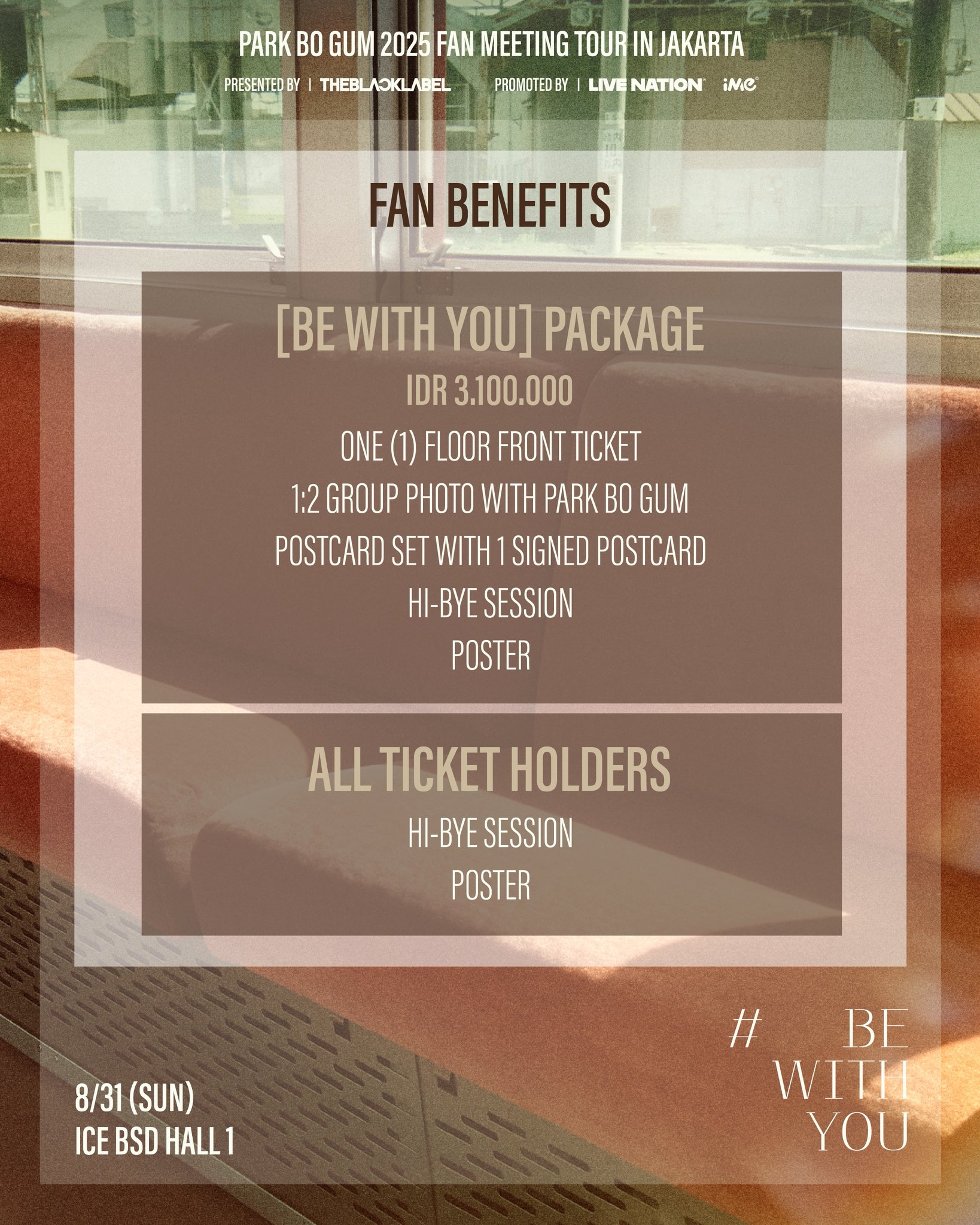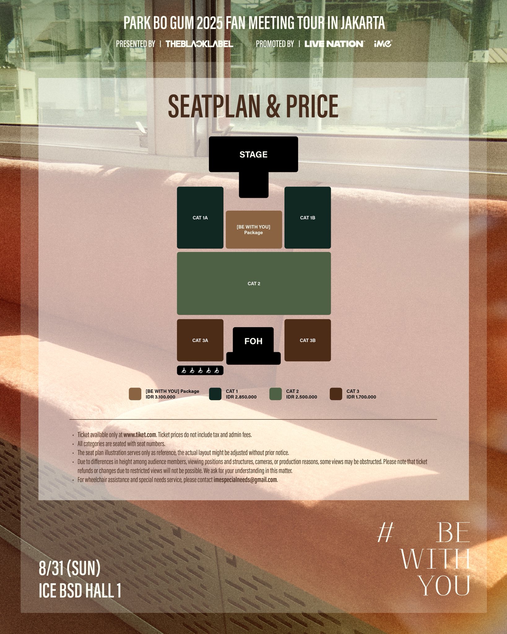 Ticket price : – BE WITH YOU Package (Seating) : Rp 3.100.000