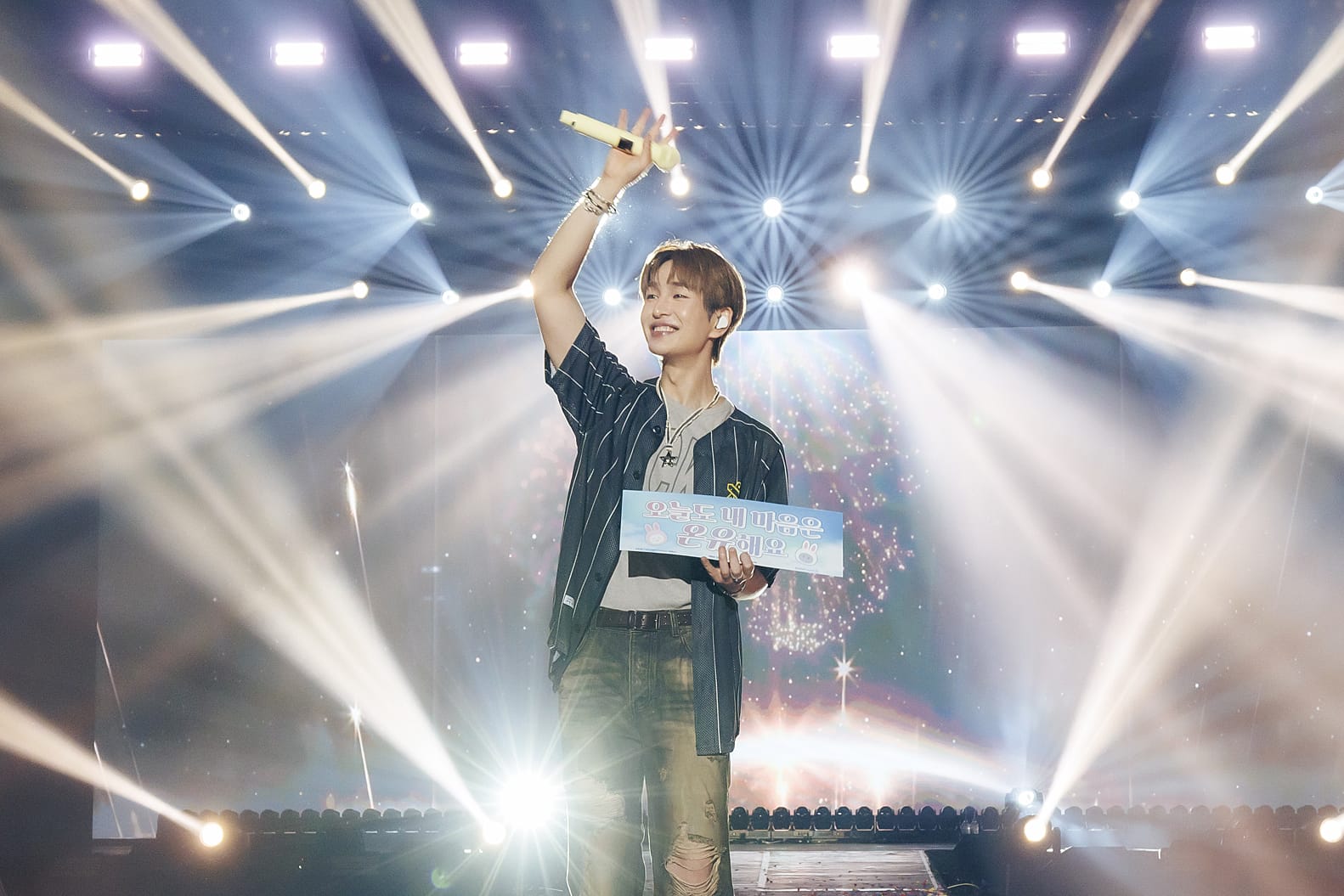 He performed a powerful setlist including PERCENT (%), No Parachute, Yeowoobi, Far Away, Conversation, Paradise, Winner, Silky, Sunshine, and more, showcasing his sweet yet powerful vocals. ONEW also charmed fans with playful jokes in Thai like “อาจจะยังน้า!” and spread warmth with his bright smile.