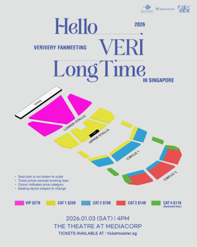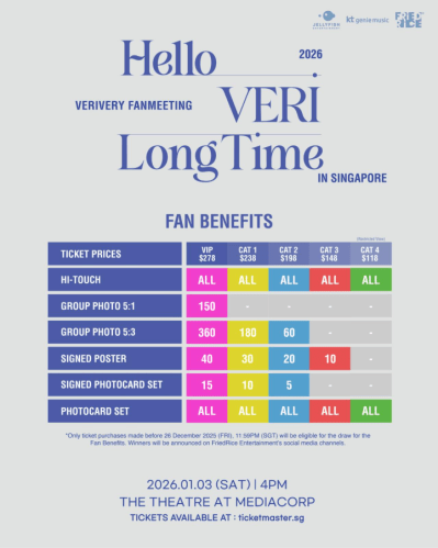 Ticket sales for 2026 VERIVERY FANMEETING ‘Hello VERI Long Time’ IN SINGAPORE will begin at 2PM (SGT) on 8 December 2025 via Ticketmaster Singapore, at bit.ly/VERIVERYSG26.