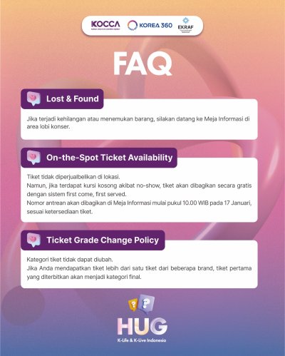 FAQ for “K-Life & K-Live Indonesia: HUG K-Pop Concert”