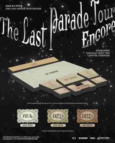 During his last visit, B.I delivered a performance that resonated deeply with fans, combining honest storytelling with a commanding stage presence. The upcoming encore will carry that same spirit while offering a refreshed presentation of The Last Parade, giving audiences the chance to experience the show in a way that feels both familiar and newly reimagined. The night promises to be meaningful not only for local fans, but also for fans traveling from across the region and around the world to be part of this special occasion. Tickets for the 2026 B.I TOUR: The Last Parade Tour ENCORE in SINGAPORE are priced from 158 SGD to 298 SGD and will go on sale on 25 February 2026 at 12:00 PM (SGT) via tapyourtickets.com. With strong demand expected, fans are encouraged to secure their seats early and come together to celebrate one more special night with B.I in Singapore.